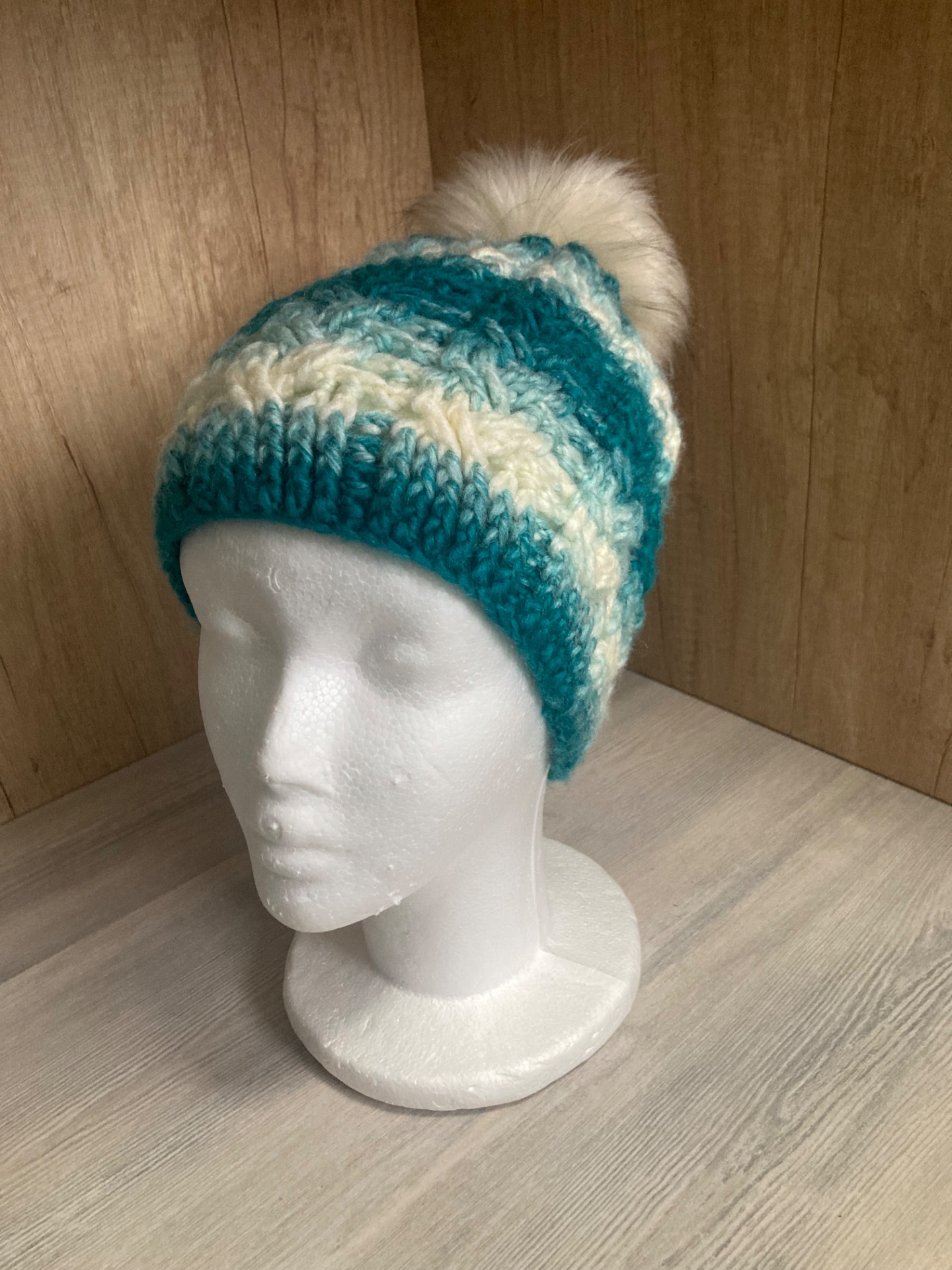 Háčkovaná čepice s bambulí
