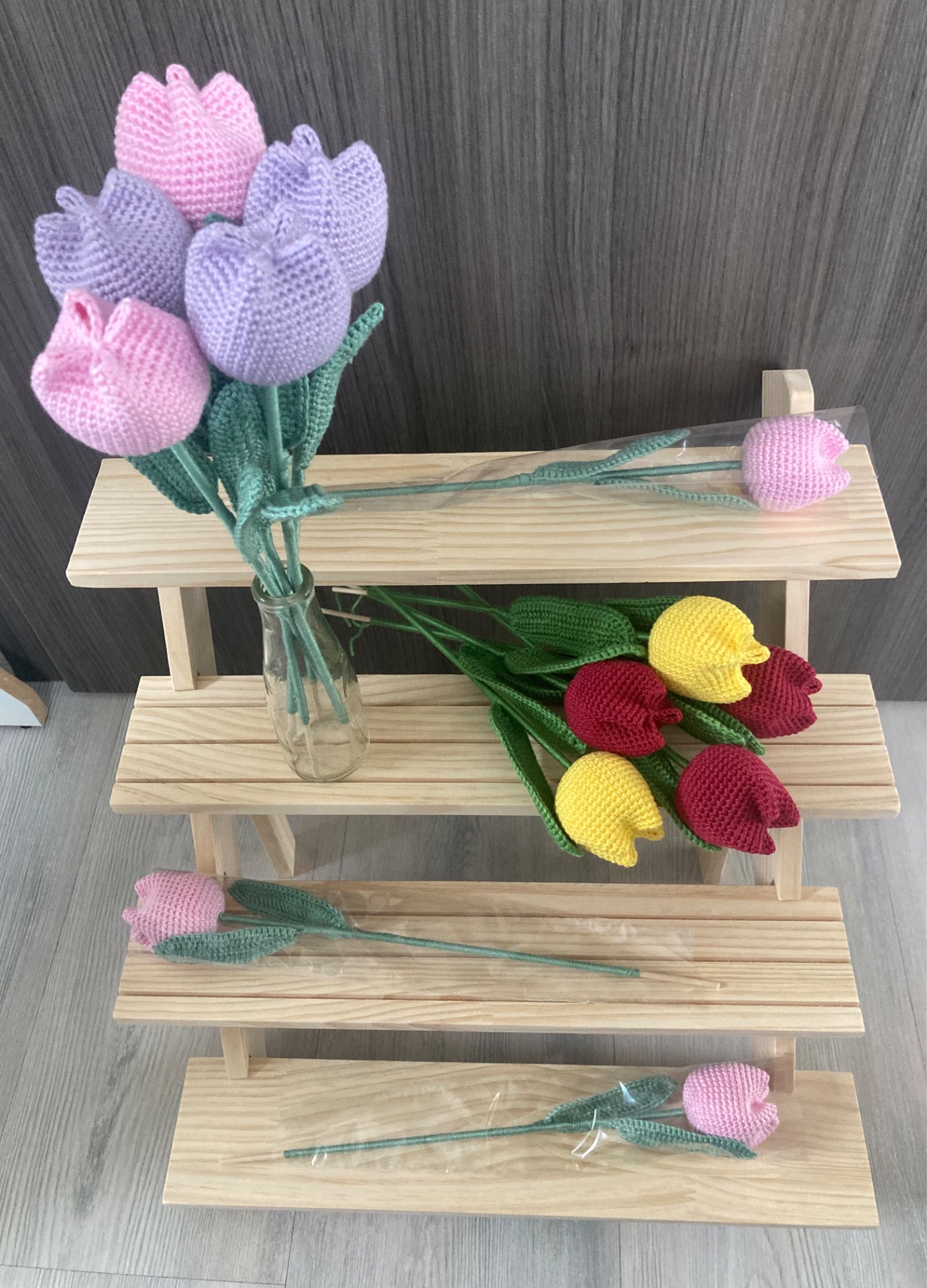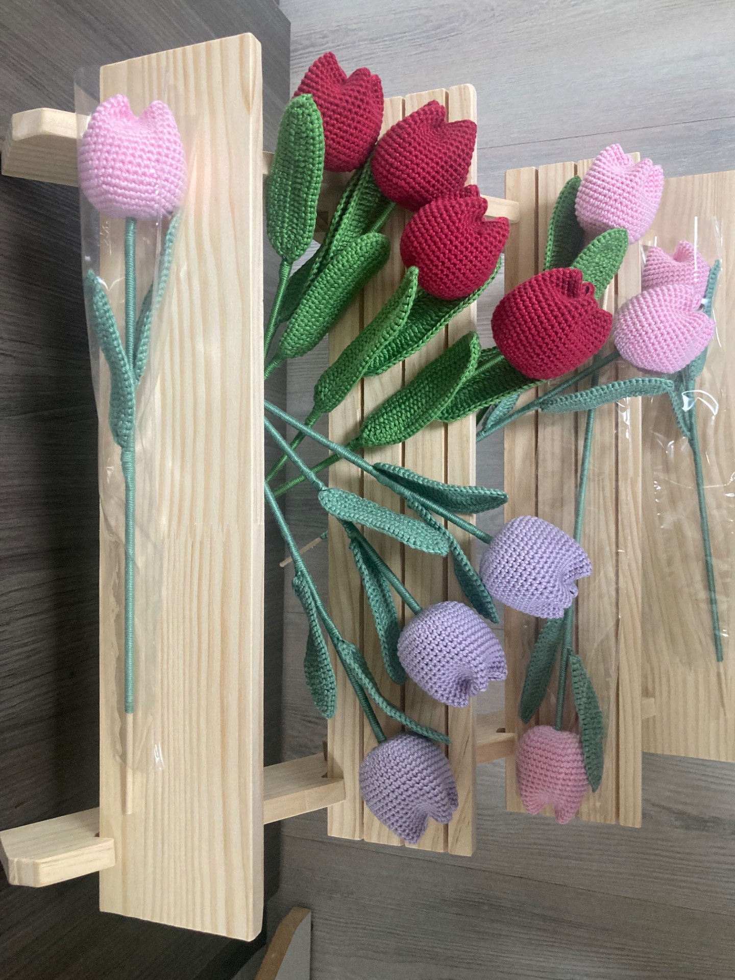 Tulipán lze použít jako zápich do květináče nebo si můžete vytvořit vlastní kytici. Lze kombinovat barvu listů a barvu květu. List lze vytvarovat podle sebe, uvnitř je drátek.